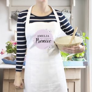 Personalised Lilac Lace ‘Will Cook for Prosecco’ White Apron