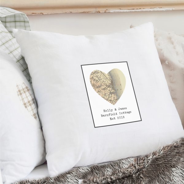 Personalise this 1896 – 1904 Revised Map Heart Cushion Cover with a Full UK Postcode (see exclusions below), and a further 3 lines of up to 15 characters each for a message. All personalisation for the message will appear as entered and is case sensitive. The Cushion Cover will display the local area surrounding your chosen postcode.Scale is 1:50,000All maps are digital reproductions of original Ordnance Survey maps.Copyright Cassini Publishing LtdPLEASE NOTE – Please ensure when entering your postcode that it is a valid postcode. If the postcode is incorrect it will delay your order. Maps are not available for Northern Ireland, The Channel Islands or the Isle of Man (any postcodes starting with BT, GY, JE or IM).NOTE: Due to the font type used please refrain from using all capitals in your personalised message. If the message is all in capitals you will find the personalisation extremely difficult to understand and may even result in personalisation being missed off the product. Many thanks for your cooperation.Cool wash only. Line Dry.Iron on reverse only.The material of this product is 100% cottonCushions are not included.This item is not available next dayIdeal for Wedding Gifts, Anniversary Gifts, Engagement Gifts, Mother’s Day, New Home Gift, Retirement Gift, Birthday Gifts.