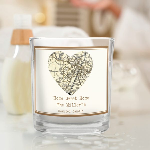 A beautiful, fragrant candle ideal for making any homes smell like heaven!The words ‘SCENTED CANDLE’ are fixed. You can then personalise this scented candle in a jar with a postcode and 2 lines of text up to 25 characters in length. All personalisation is case sensitive and will appear as entered.The candle holder will display the local area surrounding your chosen postcode.Scale is 1:50,000All maps are digital reproductions of original Ordnance Survey maps.Copyright Cassini Publishing LtdPLEASE NOTE – Please ensure when entering your postcode that it is a valid postcode. If the postcode is incorrect it will delay your order. Maps are not available for Northern Ireland, The Channel Islands or the Isle of Man (any postcodes starting with BT, GY, JE or IM).Approximately 25 hours burn time.Made from Paraffin wax.Scents may vary.Ideal for Birthdays, New Home, Weddings, Mother’s Day.