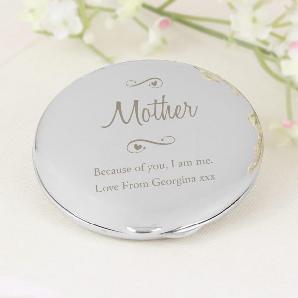 An ideal gift for someone who takes pride in their appearance!Personalise this compact mirror with a name up to 12 characters in length and a message over 2 lines of 25 characters per line. All text is case senstive and will appear as entered, however, due to the font used please avoid entering all your text in block capitals for the name as this may result in the personalisation being difficult to read.Compact is nickel plated.Black Pouch Included. Perfect for Any Occasion.