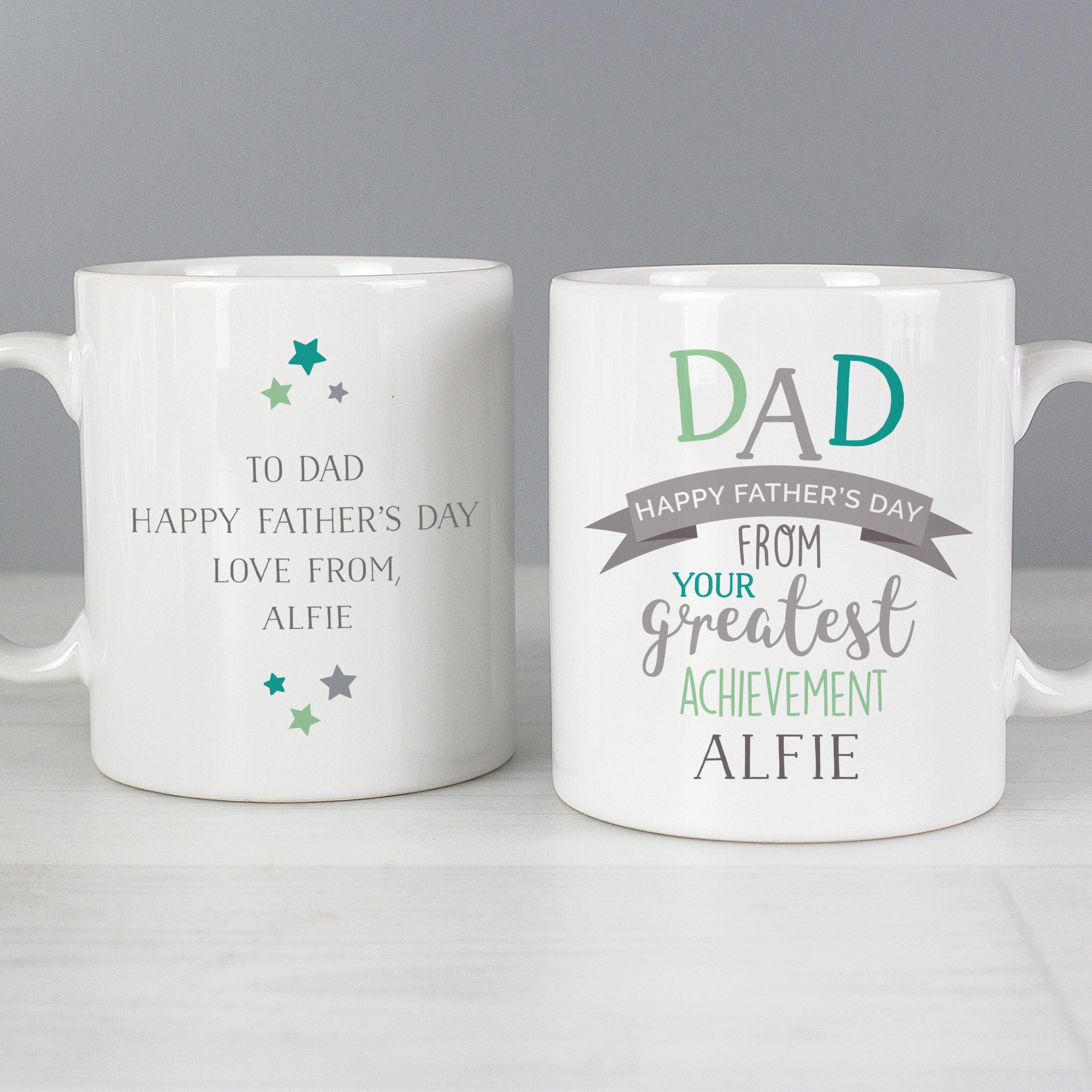 This Personalised Dad’s Greatest Achievement Mug is a perfect gift for Father’s day!The front of the mug can be personalised with 12 characters. This will appear in fixed upper case.The reverse of the mug can be personalised with 4 lines of text, with up to 20 characters per line. This case sensitive and will appear as entered. The words “”Dad Happy Father’s Day from your greatest achievement”” are fixed and cannot be amended.What’s more, this fantastic gift can also be made and despatched in 48 hours.Hand washing is recommended.Material is ceramic.Ideal for Father’s Day