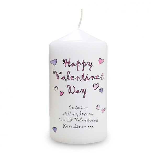 Personalise this Happy Valentine’s Day Candle with any message over 4 lines and up to 20 characters per line. The wording ‘Happy Valentine’s Day’ is standard text. Candle is presented in organza bag.Approximately 58 hours burn time.