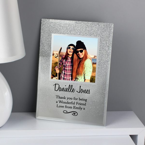This glitter frame is the perfect way to cherish memories shared with loved ones.Personalised this glitter frame with up to 4 lines of text.Line 1 – with up to 20 characters (larger text, please refrain from using block capitals as this may make the personalisation hard to read.)Lines 2-4 – up to 25 characters per line (Personalisation will appear as entered)This frame hold a 4×4 photo.Suitable for Instagram photosIncludes a stand only and cannot be wall mounted.Perfect for: Any occasion