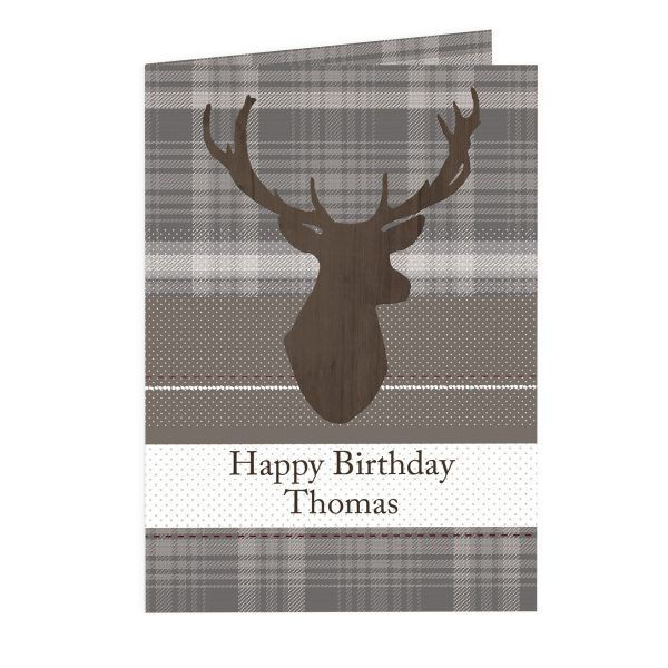 This Highland Stag card is a stylish, rustic surprise that can be personalised to suit any occasion. The card can be personalised with 2 lines of text with up to 20 characters per line on the front. The inside of the card can also be personalised with 5 lines of text with up to 20 characters per line. Please note that all text is case sensitive and will appear as entered. All cards come in a brown outer envelope with a plain white envelope inside.Our cards measure 185mm x 132mm.What’s more, our great value cards include free standard delivery.Card orders received before 1pm will be dispatched the same working day.Ideal for Birthdays, Father’s Day, For Him