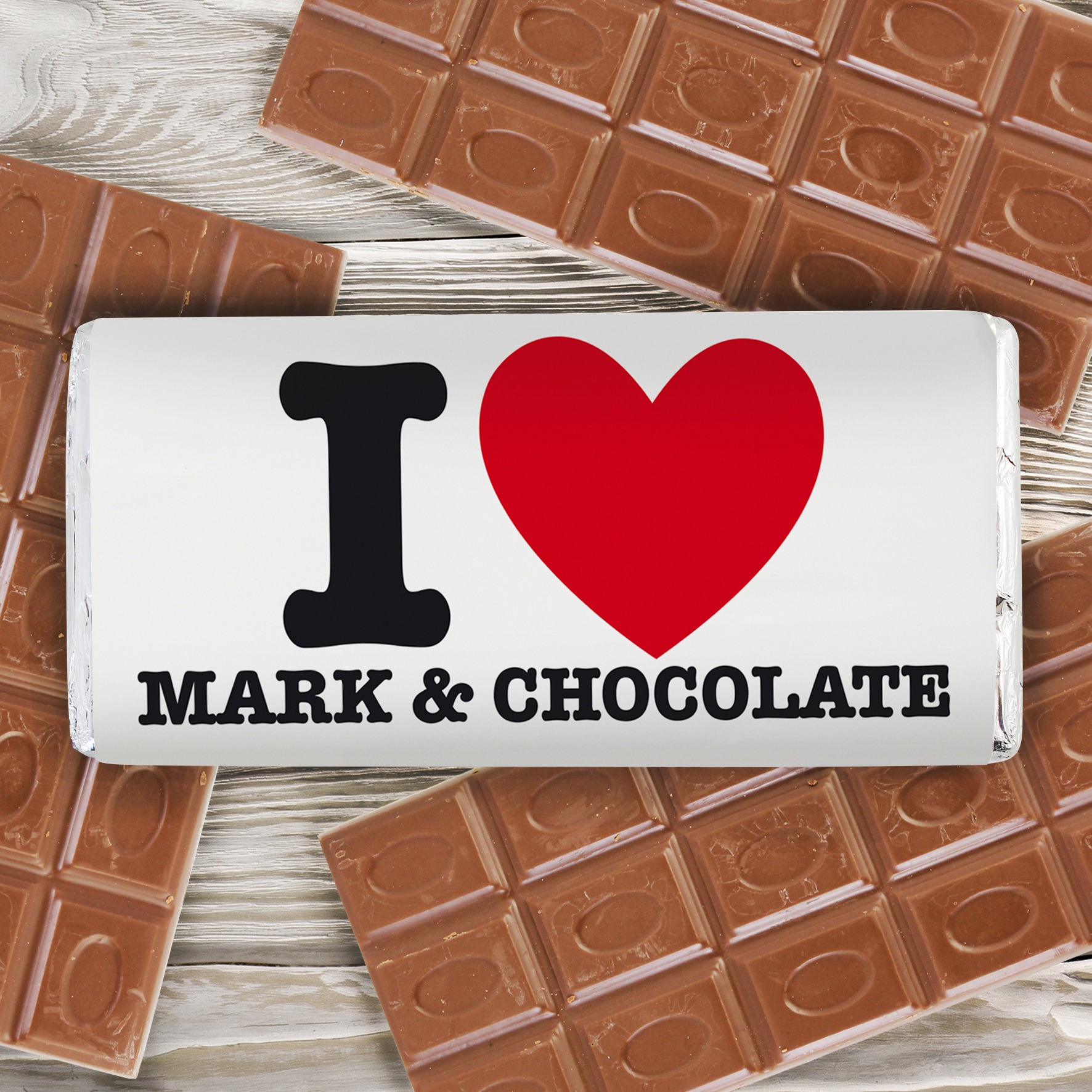 Personalise this I HEART Chocolate Bar with a message/name of upto 20 characters on the front and on the back over two lines of 25 characters each.The I Heart design is fixed.All text is case sensitive and will appear as entered.Milk Chocolate BarWeight 100gMay contain traces of nutsOur great value chocolate includes free standard delivery.Ideal for Valentines Day.