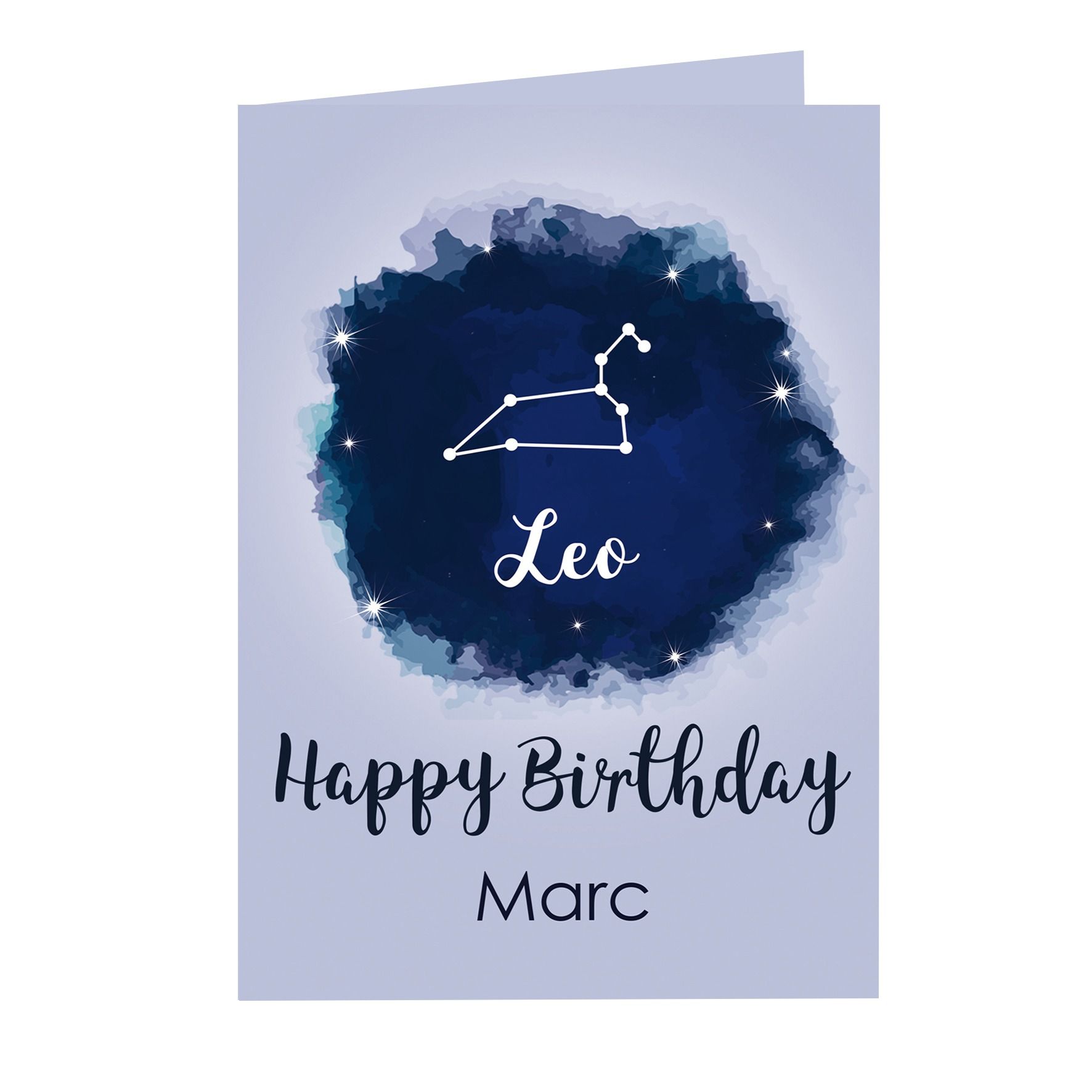 This lovely Personalised Zodiac Leo Card is a unique way to celebrate that special Birthday.Personalise the front of this card with any name up to 20 characters.The inside of this card can be personalised with up to 5 lines of text, with a maximum of 25 characters per line.On the front of this card the words ‘Happy Birthday’ and ‘Leo’ are fixed. Inside of the card on the left hand side the Leo dates (July 23rd – August 22nd) and the traits are also fixed text.All personalisation is case sensitive and will appear as requested.All cards come in a brown outer envelope with a plain white envelope inside. All cards measure 185mm x 132mm.Our great value cards include free standard delivery.Card orders received before 1pm will be dispatched the same working day.Ideal for Birthday.