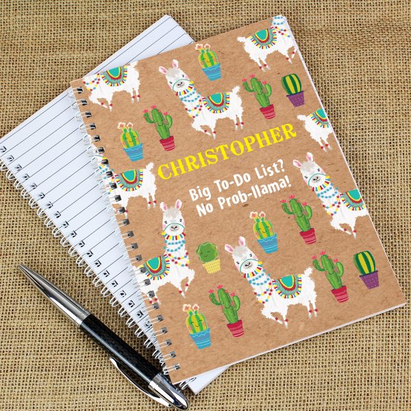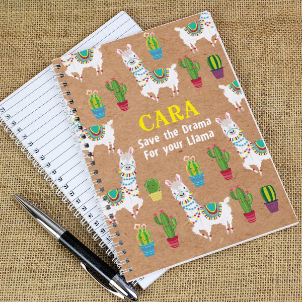 Our Llama A5 Notebook is an ideal gift for any fan of Llamas. It can be given as a back to school gift, or simply as a nice surprise! The notebook can be personalised with any name up to 12 characters followed by any message over 2 lines, with up to 15 characters per line. Please note, the name will appear in uppercase. Lines 2 and 3 will be personalised as entered.All notebooks contain 40 double sided lined pages.Ideal as a stocking filler or a Secret Santa gift Ideal for Christmas, Birthdays, Back To School.