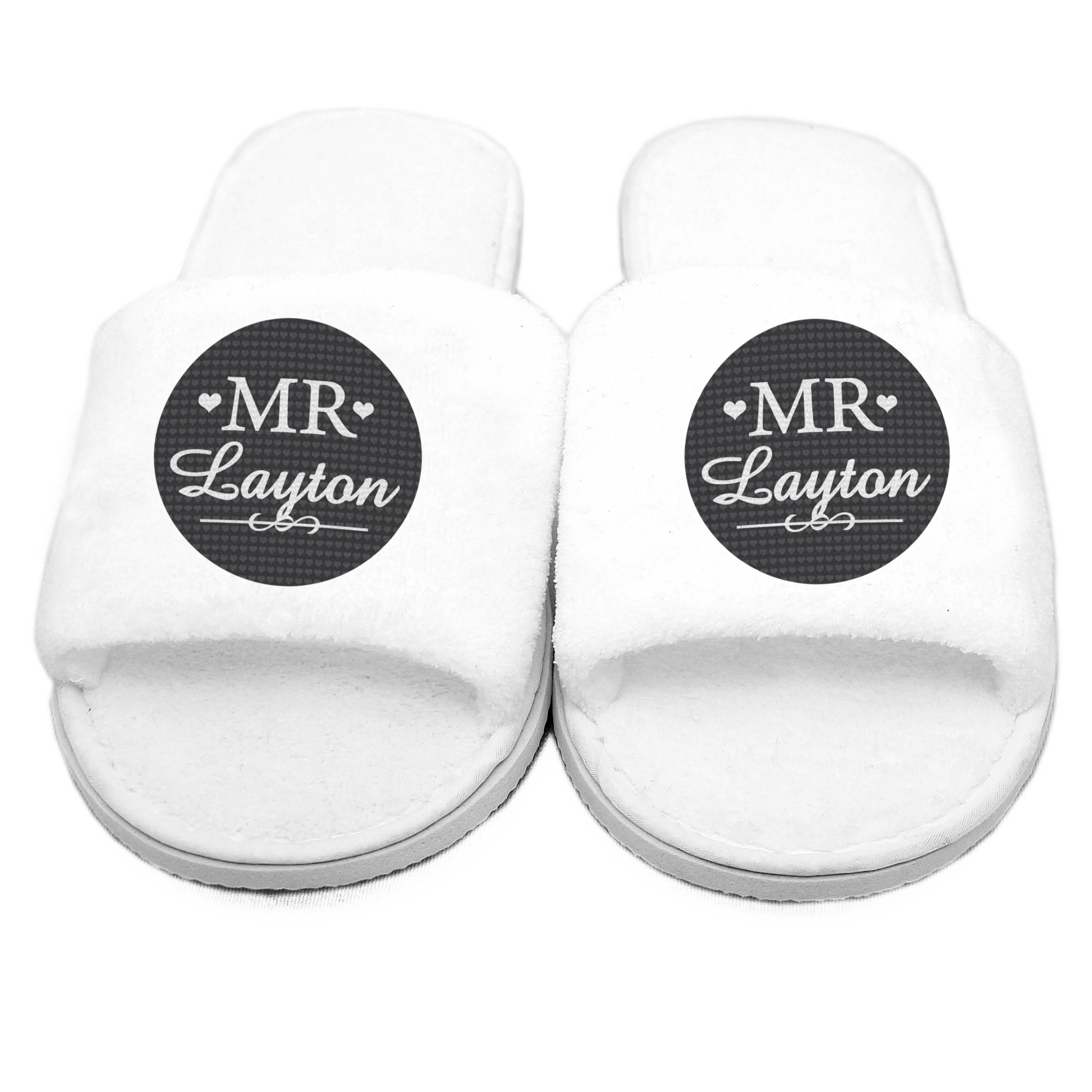 Enjoy your special occasion in pure comfort!You can personalise this hotel/spa style pair of open toe slippers with a surname up to 12 characters in length. The same personalisation will appear on both slippers.NOTE: Due to the font type used please refrain from using all capitals in your personalised message. If the message is all in capitals you will find the personalisation extremely difficult to understand and may even result in personalisation being missed off the product. Many thanks for your cooperation.One size universal fitting.Surface clean only.Velour plush slipper with soft rubber sole. Ideal for Special Occasions, Weddings, Stag Do, Spa Days, Honeymoon.