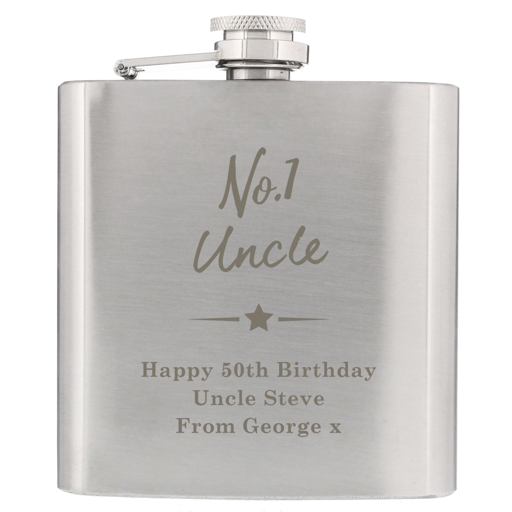 Our Personalised ‘No.1’ Hip Flask is perfect for a one of a kind recipient. The flask can be personalised with a role up to 15 characters (e.g. Dad, Brother, Husband) and a message over 3 lines of text, with up to 20 characters per line. ‘No.1’ is fixed and cannot be amended.Please note that all personalisation is case sensitive and will appear as entered. Please avoid entering your text in block capitals as this may result in the personalisation being difficult to read.This Hip Flask comes presented in a gift box.The material of this product is stainless steel. Perfect for Wedding, Father’s Day, Birthdays, Christmas, Teachers