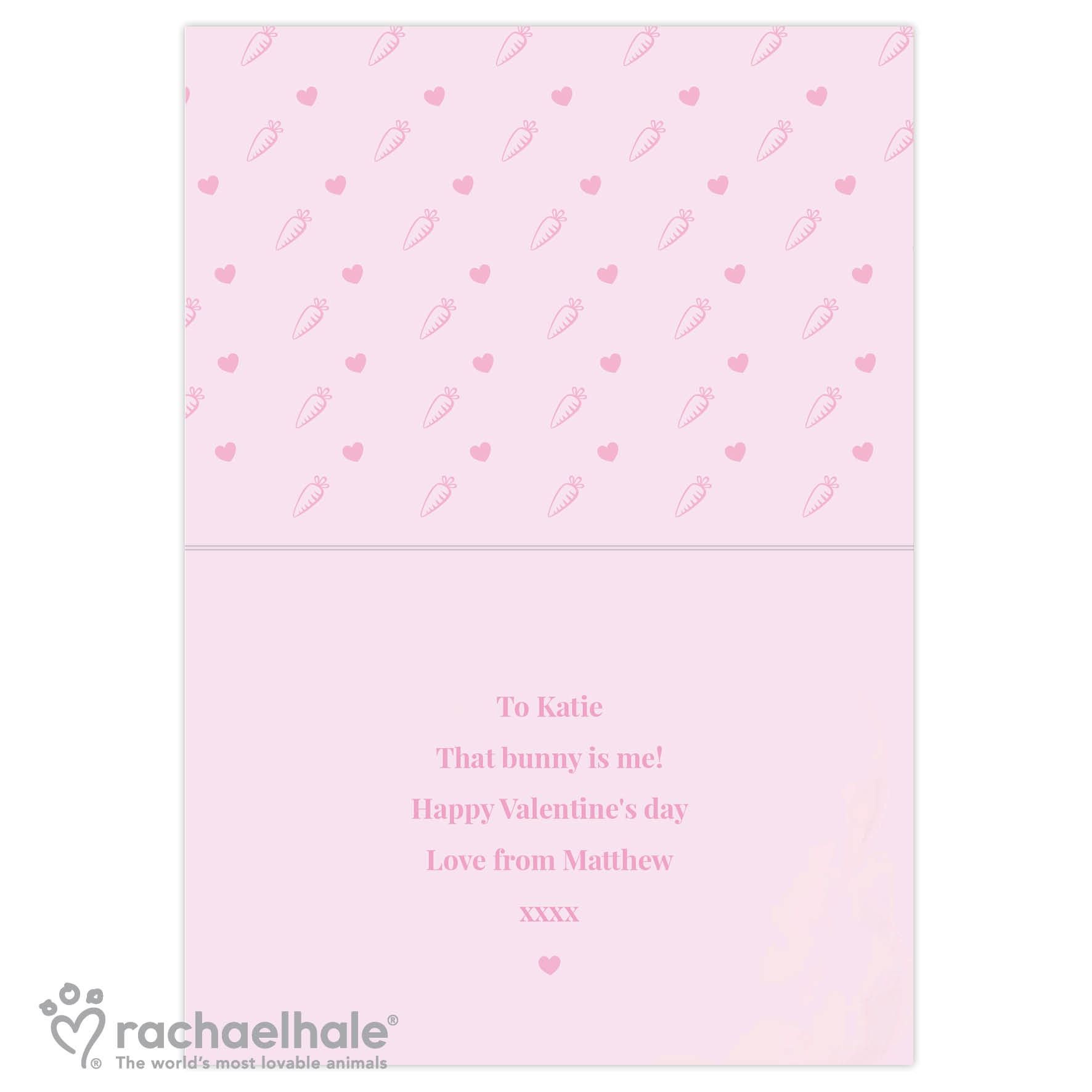 This personalised Rachael Hale ‘Some Bunny’ card will make an adorable surprise for any special occasion.The front of this card can be personalised any name up to 12 characters.’Some bunny loves you’ is fixed text.The inside of this card can be personalised with 5 lines of text, with up to 25 characters per line.All text is case sensitive and will appear as entered.Please avoid entering your personalisation in block capitals, as this may result in the text being difficult to read.All cards come in a brown outer envelope with a plain white envelope inside. Our cards measure 185mm x 132mm.Our great value cards include free standard delivery.Card orders received before 1pm will be dispatched the same working day.Ideal for Valentine’s Day, Birthdays, Anniversaries.