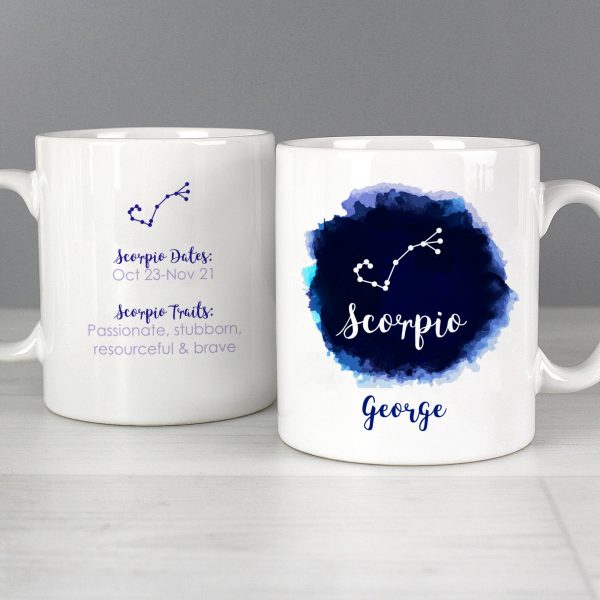 This Personalised Zodiac Scorpio Mug is the perfect gift for any occasion.The mug can be personalised with any name on the front up to 20 characters.The reverse of the mug has fixed text as follows’Scorpio dates Oct 23 – Nov 21”Scorpio traits Passionate, stubborn, resourceful & brave’All personalisation is case sensitive, please refrain from using block capitals as this make the personalisation hard to read.What’s more, this fantastic gift can also be made and despatched in 48 hours.Hand washing is recommended.Material is ceramic.Perfect for Birthdays and House Warming.