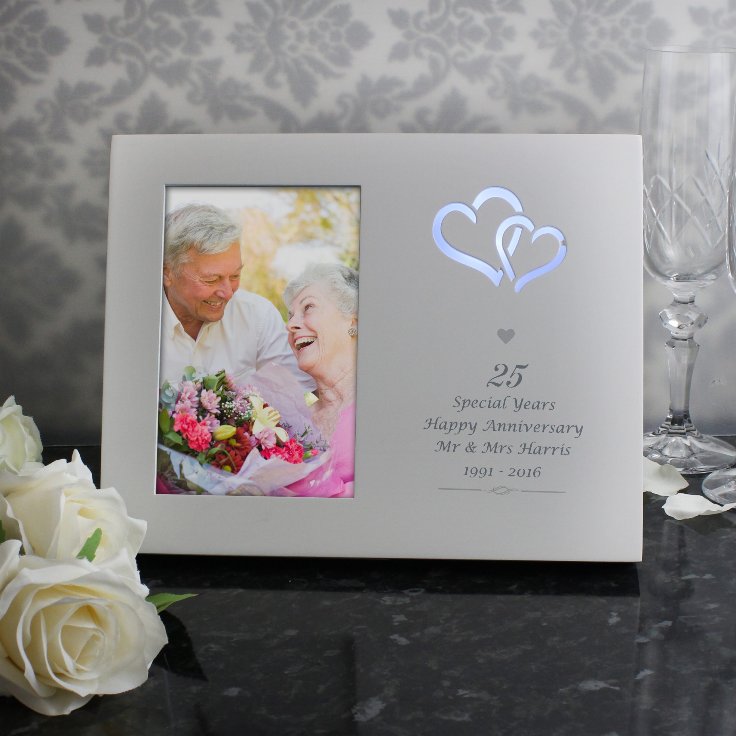 A beautiful, atmospheric frame with a soft, warm light that illuminates the fixed text, to add that cosy touch – Ideal for placing upon a mantel piece or shelf.Personalise this Light Up Photo Frame with a number and 4 lines of text with up to 20 characters per line. NOTE: Due to the font type used please refrain from using all capitals in your personalised message. If the message is all in capitals you will find the personalisation extremely difficult to understand and may even result in personalisation being missed off the product. Many thanks for your cooperationRequires 2xAAA Batteries. The frame has an on/off button on the reverse.The frame can hold a 4×6 portrait photograph.The material is MDF.Ideal for Anniversaries, Valentines, Couples, Birthdays.