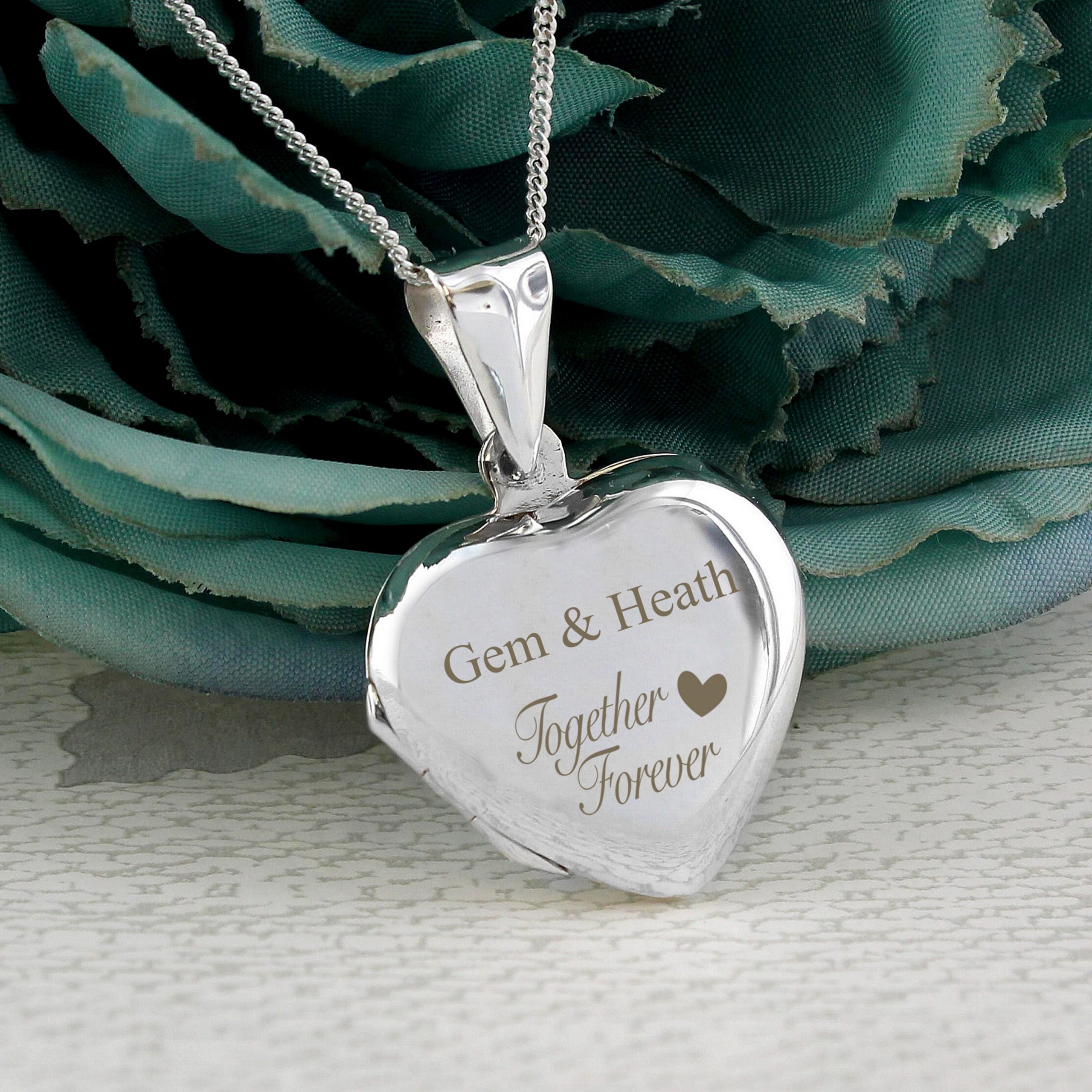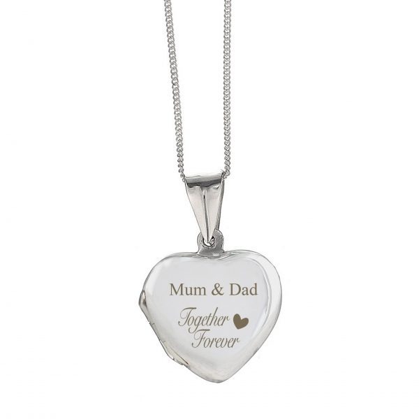 This gorgeous Together Forever Heart Locket is the perfect gift for that special lady. What’s more this can hold up to 2 pictures inside.This unique gift can be personalised with any name or message up to 12 characters. Necklace comes presented in a presentation box.This necklace is sterling silverThe chain length is 16 inches.Ideal for Birthdays, Mothers Day, Valentines Day