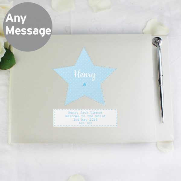 Personalise this Guest Book with a name/role in the centre of the heart of up to 12 characters in length and a message below over 4 lines of 20 characters per line. All personalisation is case sensitive and will appear as entered. Due to the font type used, please refrain from using all capitals in the name/role.There are approximately 30 sheets of high quality paper inside and the pen is a ball point.The cover has a soft linen texture.Ideal for New Born, Holy Communion, Christenings, Birthdays.