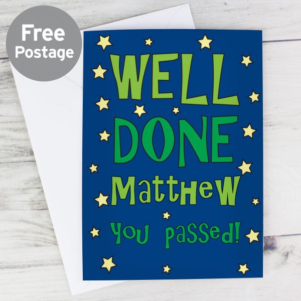 Personalise this Well Done Card with a name up to 12 characters and a message up to 15 characters on the front. You can also add a message inside the card over 5 lines and up to 20 characters per line. ‘Well Done’ is fixed text. All cards come in a brown outer envelope with a Plain White envelope inside. All cards measure 185mm x 132mm.Our great value cards include free standard delivery.Card orders received before 1pm will be dispatched the same working day.Ideal for saying well done.