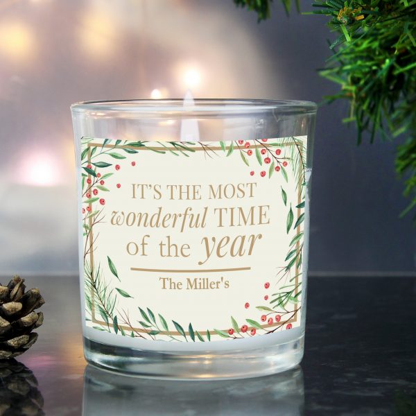 What better way to enjoy winter nights on the run up to Christmas than with our Personalised Its The Most Wonderful Time Of The Year Candle.Personalise this candle with 1 line with up to 20 characters per line. The words “”It’s The Most Wonderful Time Of The Year”” Are fixed text.Please note the personalisation is case sensitive and will appear as entered. Approximately 25 hours burn time.Made from Paraffin wax.Scents may vary.Ideal for Christmas